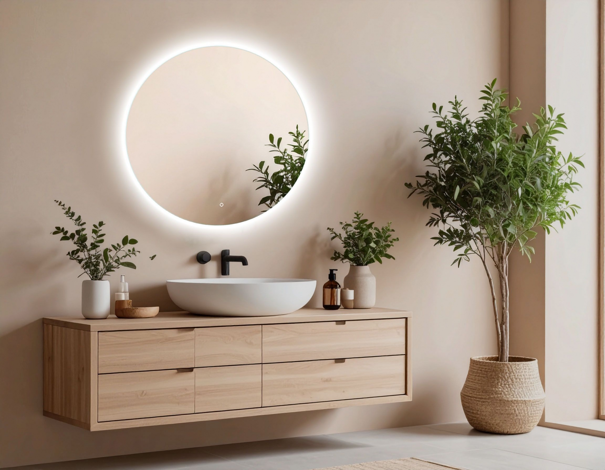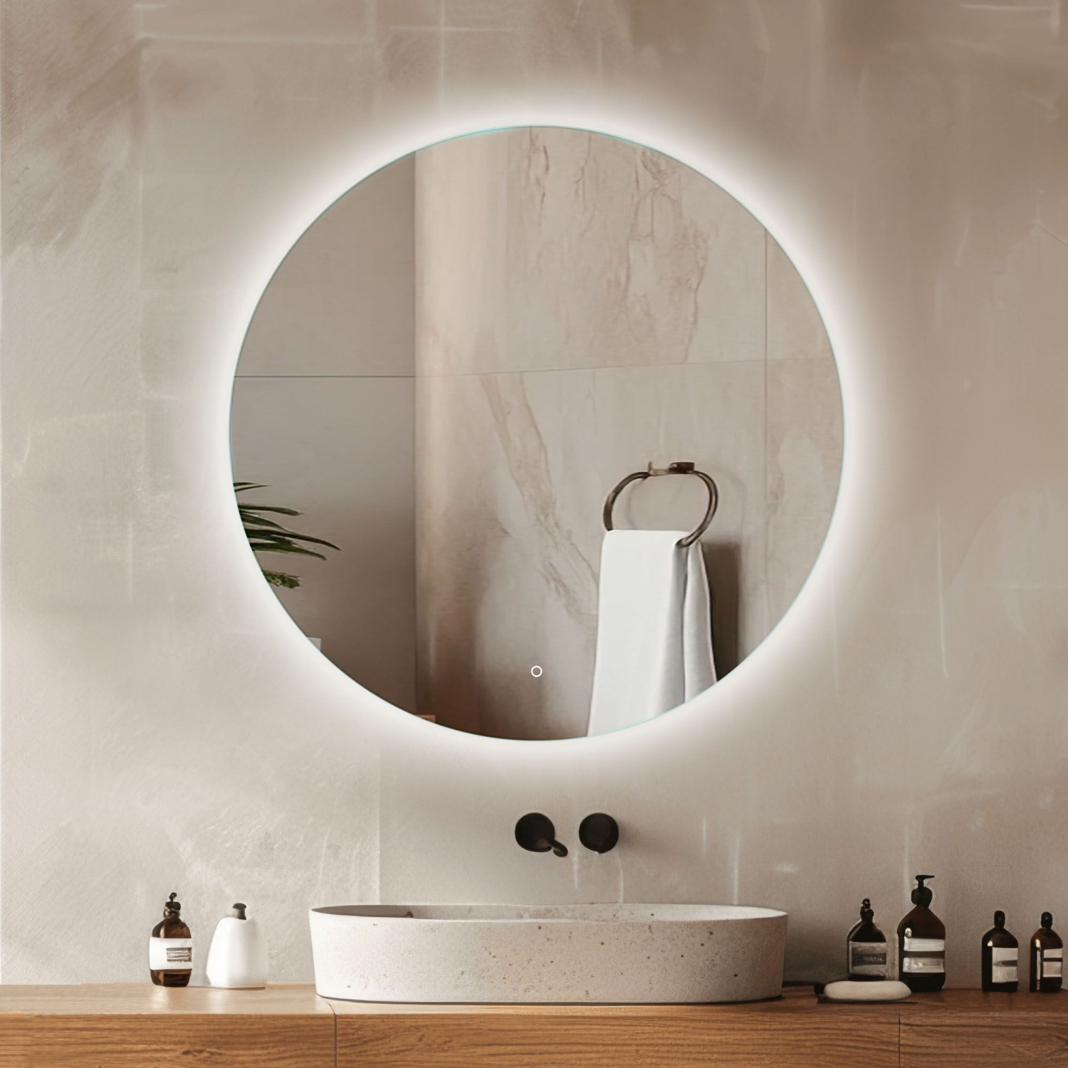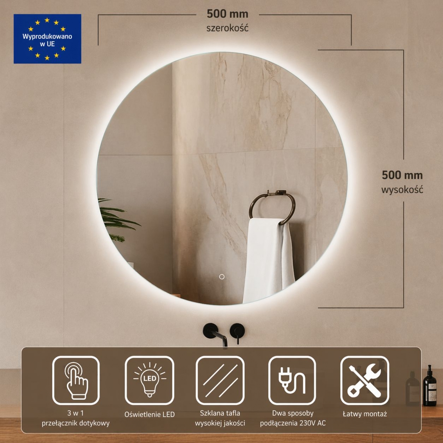 Lustro Koło LED to nowoczesny i stylowy element wyposażenia wnętrz, który łączy elegancki design z funkcjonalnością. Wyposażone w innowacyjne oświetlenie LED o równomiernym rozproszeniu światła, zapewnia idealne warunki oświetleniowe podczas codziennych czynności, jednocześnie wprowadzając do wnętrza wyjątkowy klimat. Subtelne, tylne podświetlenie tworzy efektowną poświatę wokół tafli, dzięki czemu lustro staje się nie tylko praktycznym, ale również dekoracyjnym akcentem – doskonale sprawdzi się zarówno w łazience, jak i w sypialni, przedpokoju czy gabinecie. Wygodny, dotykowy włącznik umożliwia intuicyjną obsługę, a solidne wykonanie z wysokiej jakości materiałów gwarantuje trwałość i niezawodność na lata. Lustro Koło LED to połączenie nowoczesnych technologii z ponadczasową estetyką – idealny wybór dla tych, którzy cenią komfort, styl i jakość.