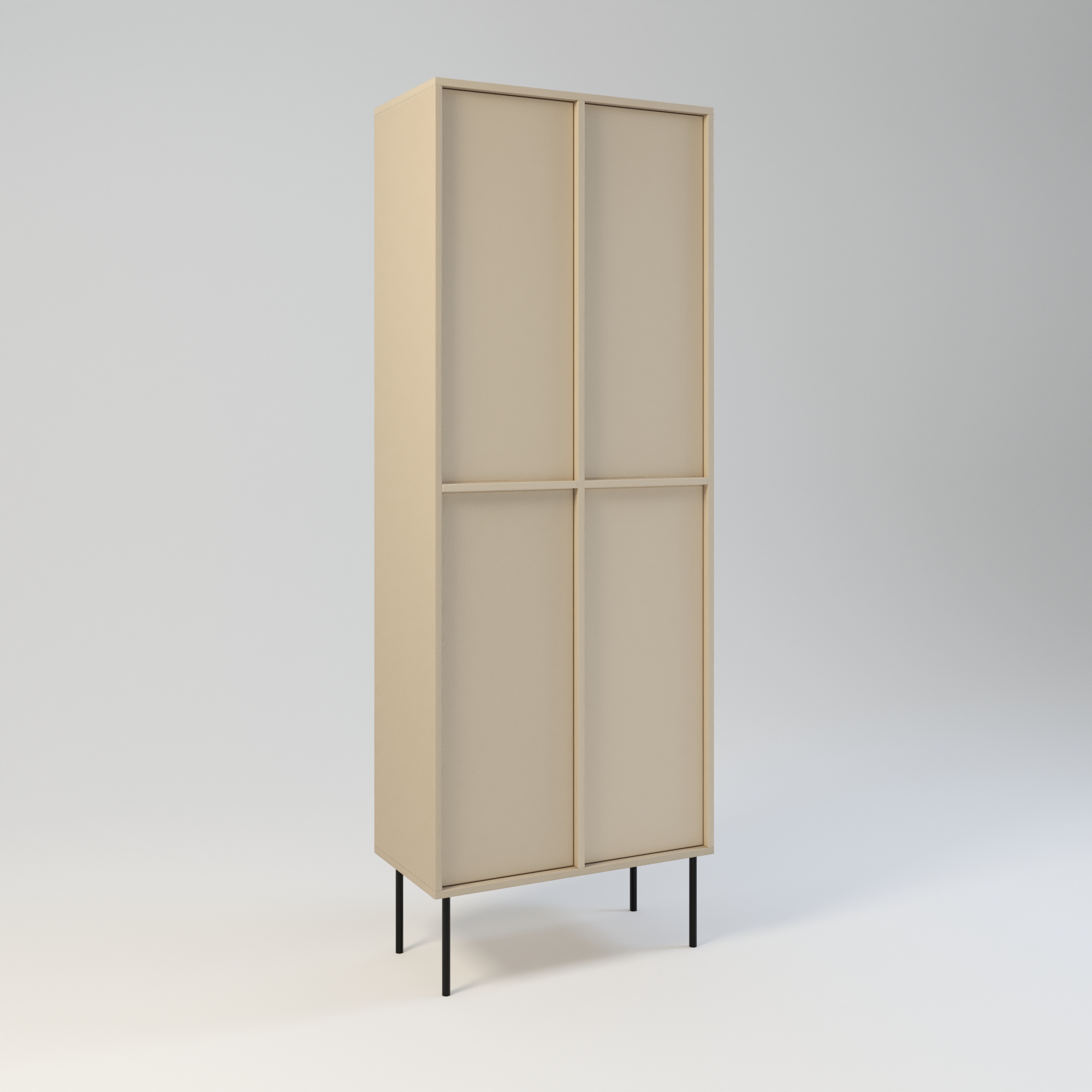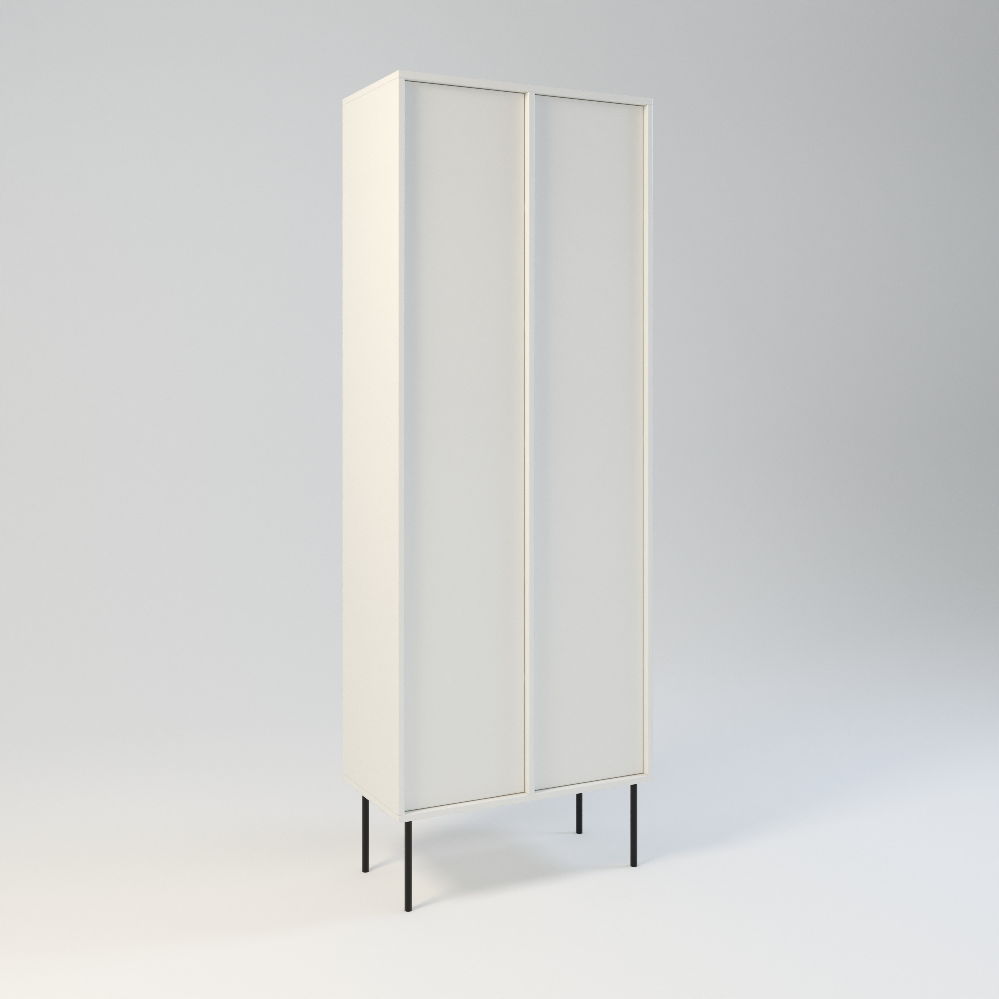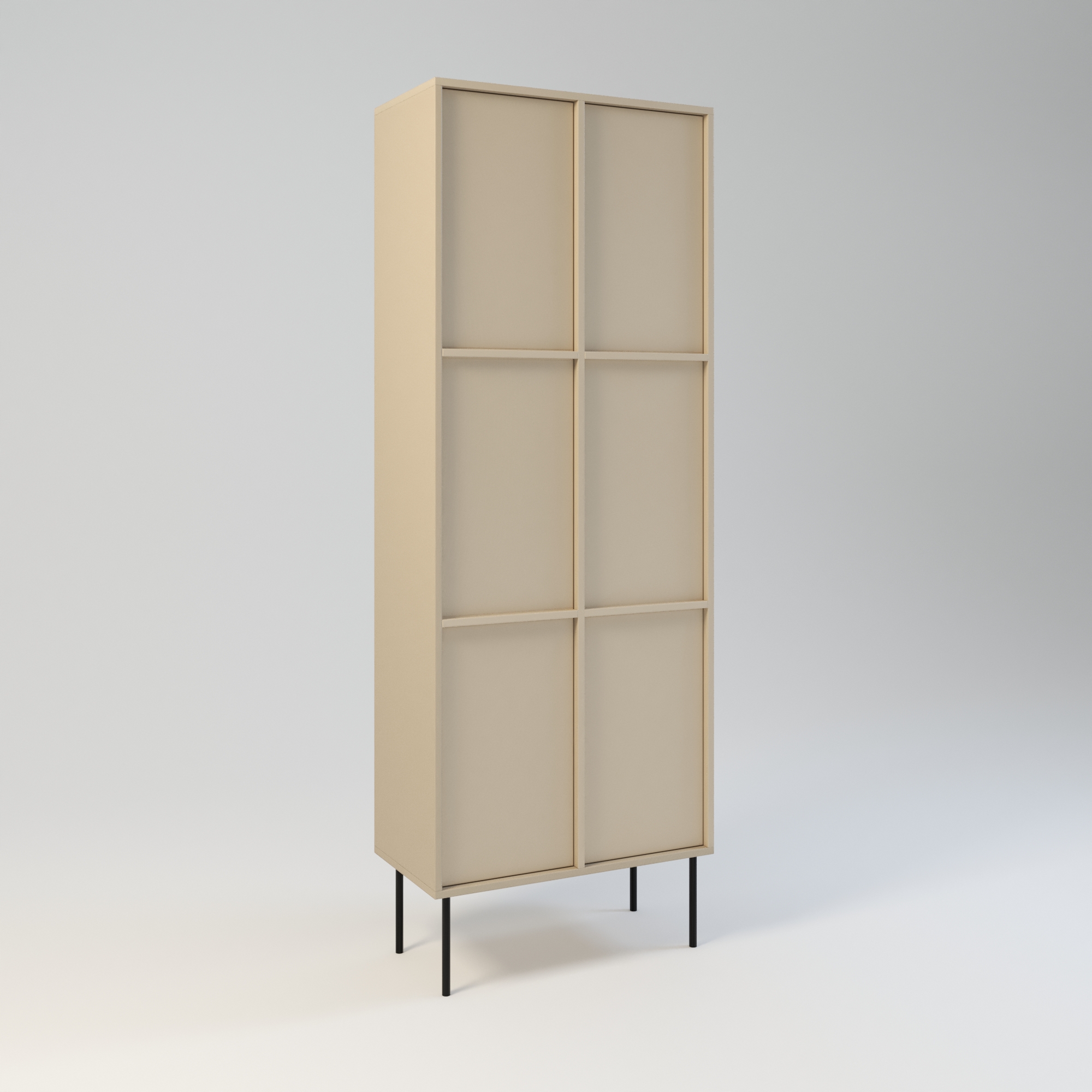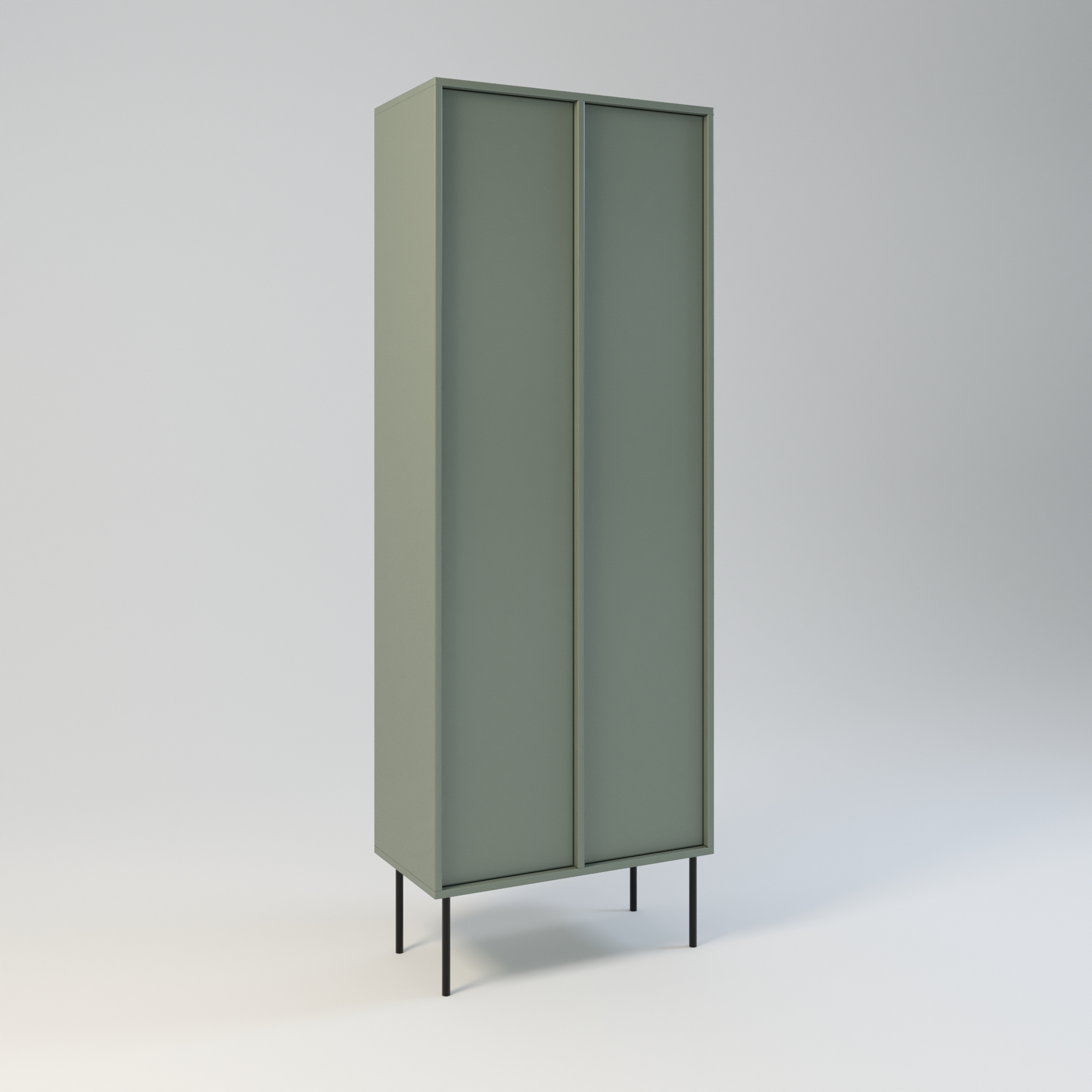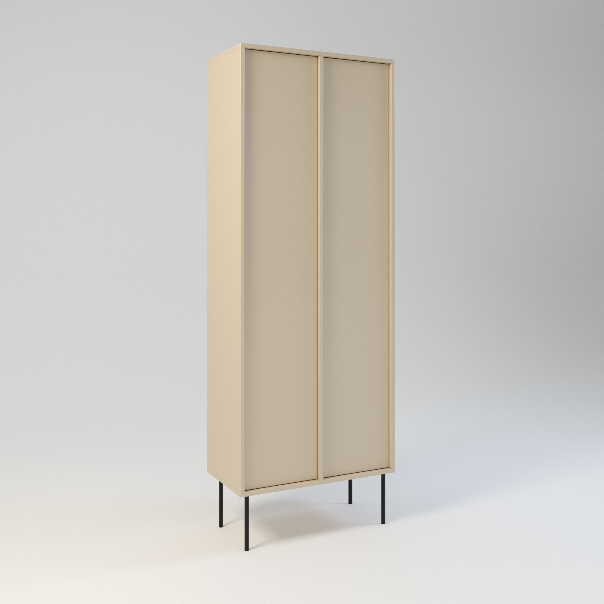 Minimalistyczny szafa o bardzo funkcjonalnej konstrukcji. Oferuje dużą przestrzeń do przechowywania. Wyposażona w 6 półek. Wysokość półek w świetle to 31 cm. Drzwi wyposażone w zawiasy z cichym domykiem, otwierane za pomocą mechanizmu tip-on. Uchwyty drzwiowe dostępne jako dodatkowa opcja. Szafa wykonany w całości z wysokiej jakości płyty laminowanej. Szafy można z sobą łączyć bokami tworząc w ten sposób większe moduły. Szafę można łączyć w większe moduły z regałem Ugo i Hioki