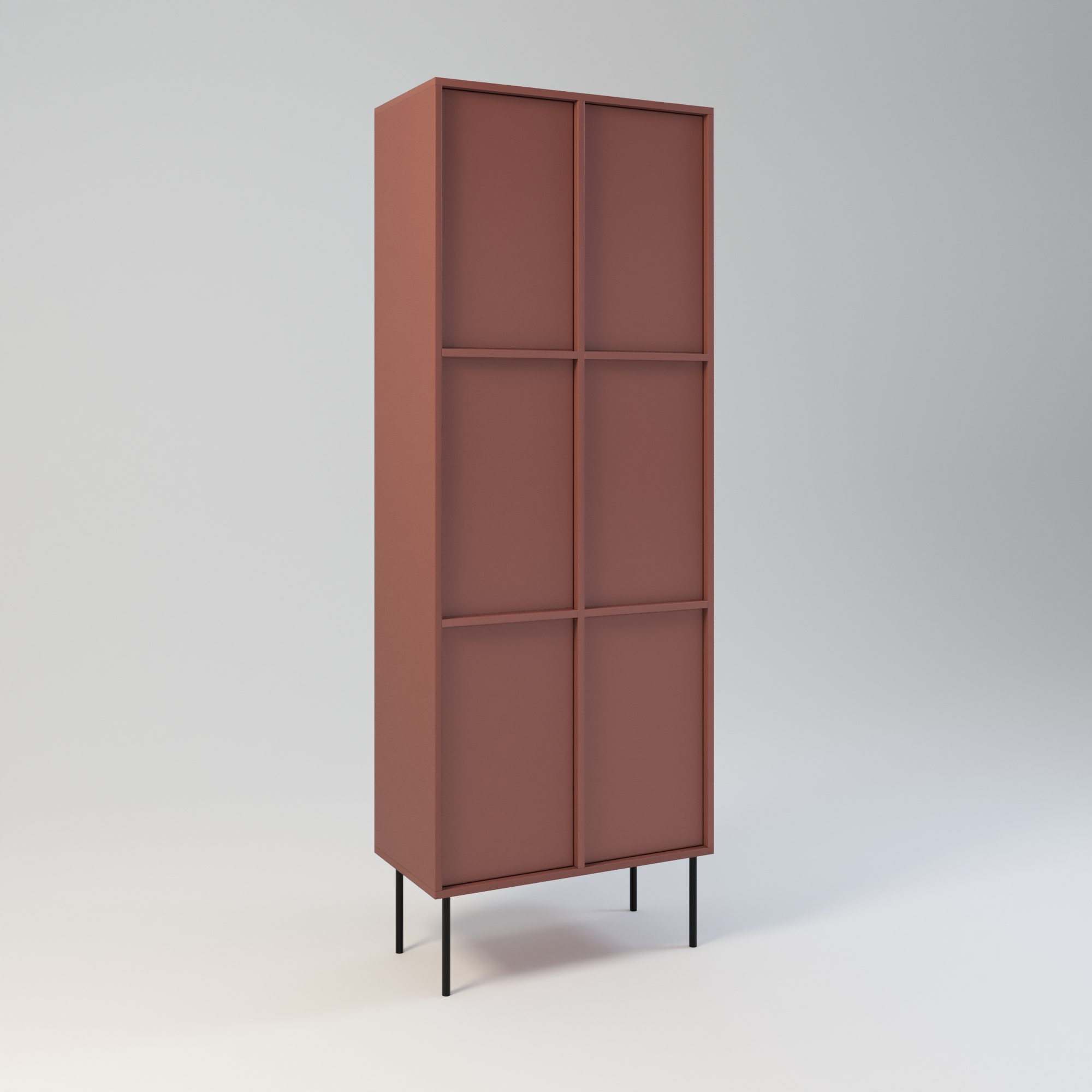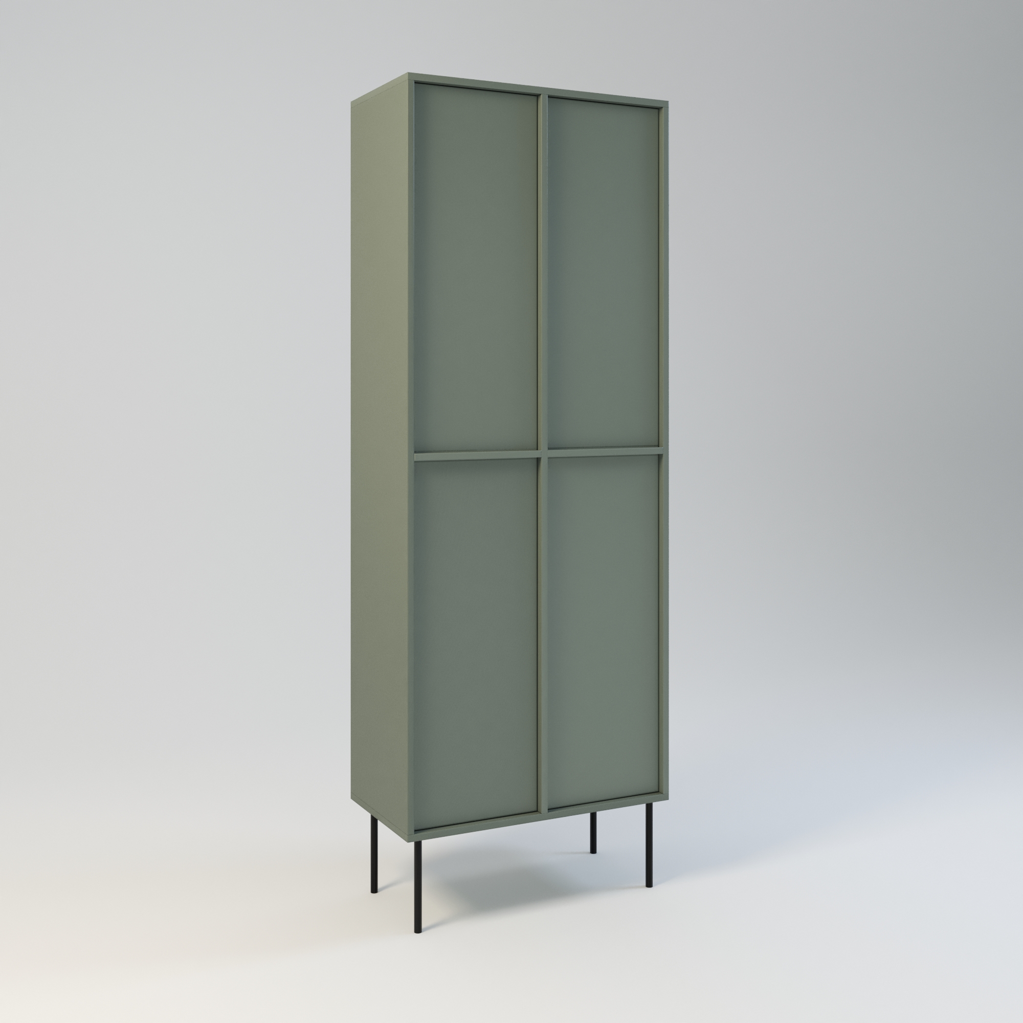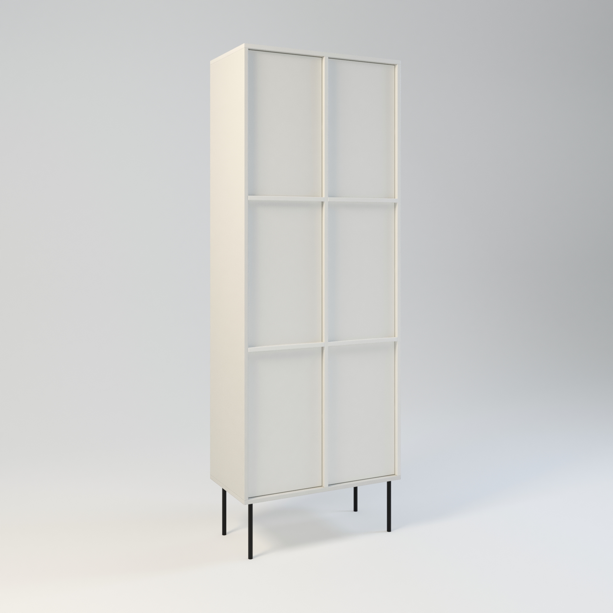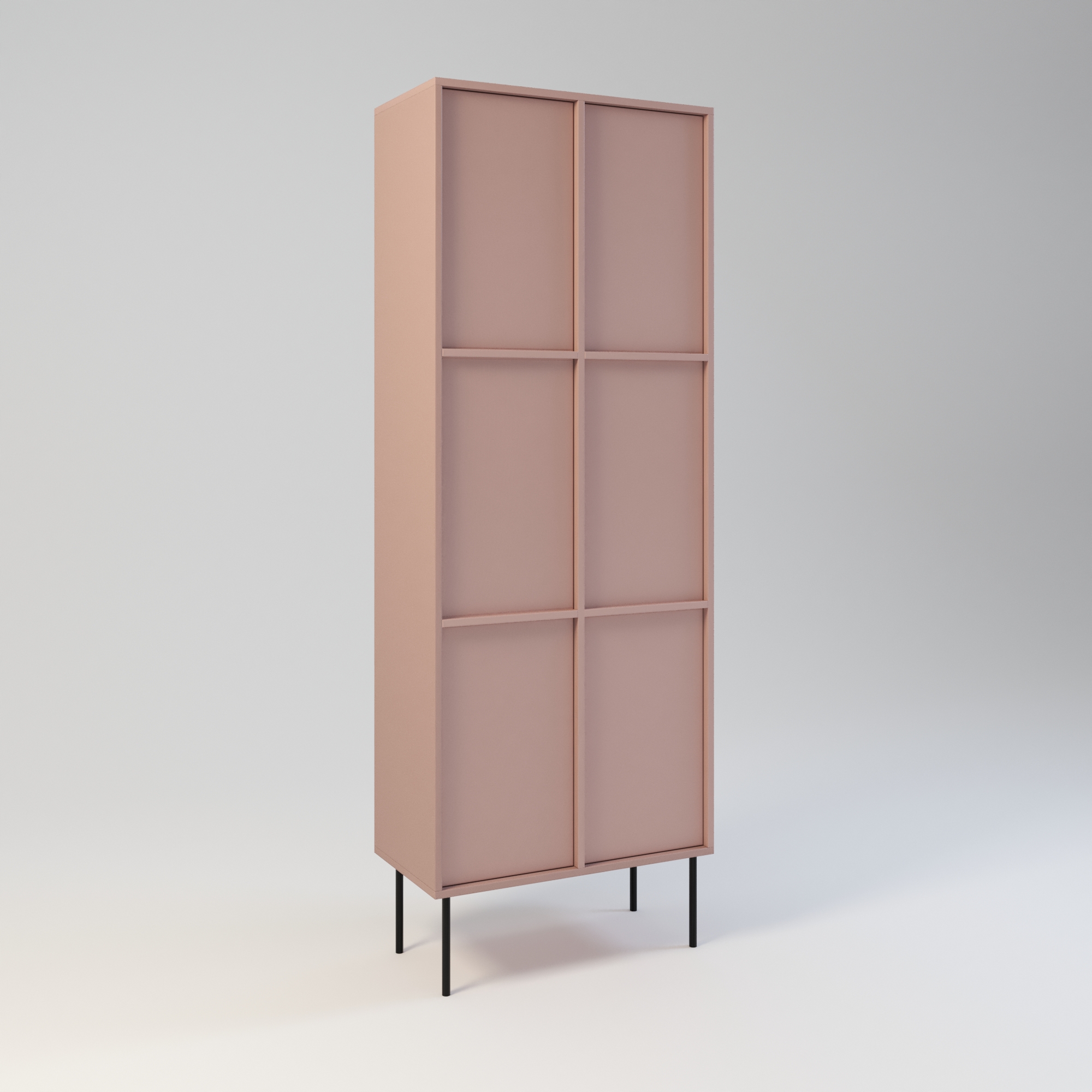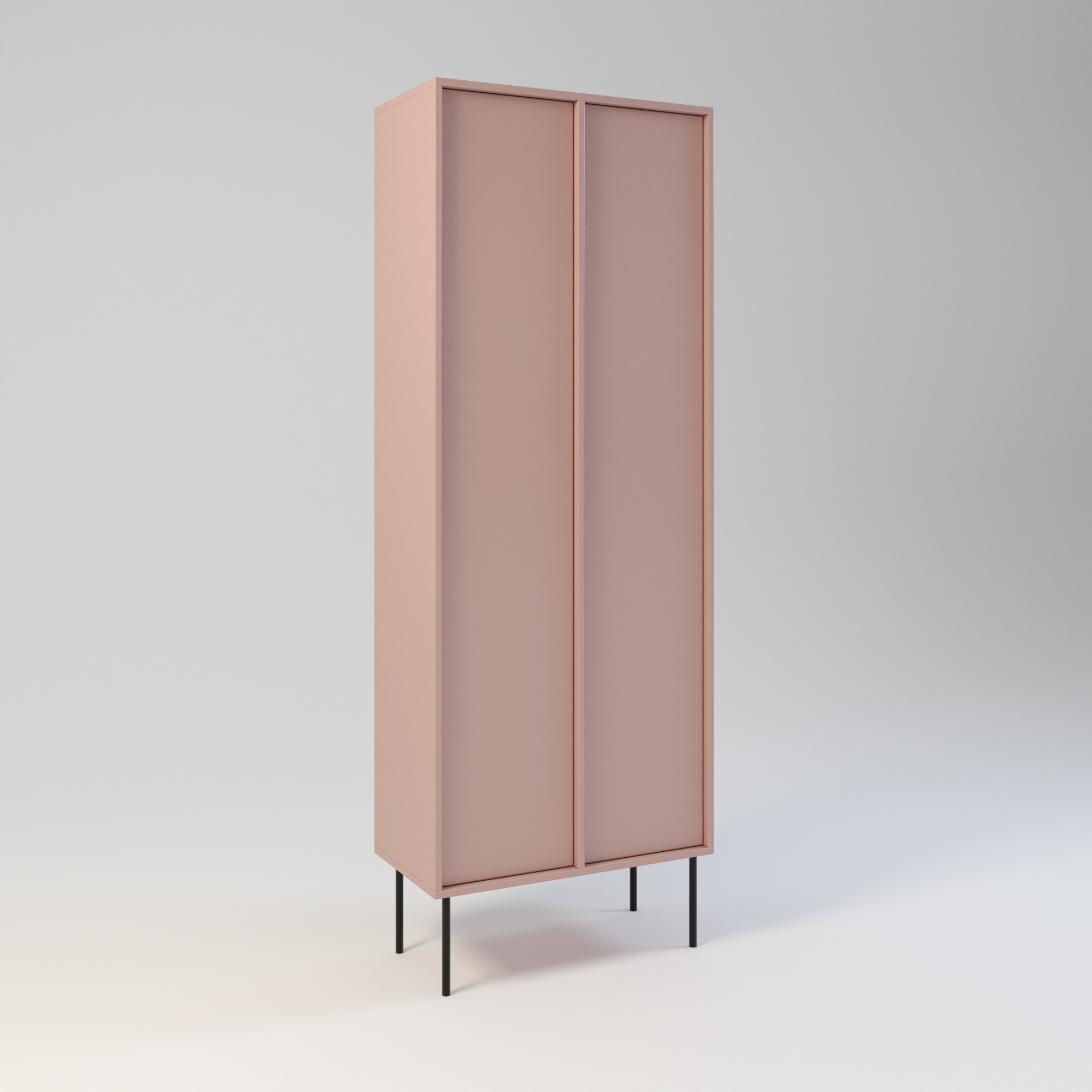 Minimalistyczny szafa o bardzo funkcjonalnej konstrukcji. Oferuje dużą przestrzeń do przechowywania. Wyposażona w 6 półek. Wysokość półek w świetle to 31 cm. Drzwi wyposażone w zawiasy z cichym domykiem, otwierane za pomocą mechanizmu tip-on. Uchwyty drzwiowe dostępne jako dodatkowa opcja. Szafa wykonany w całości z wysokiej jakości płyty laminowanej. Szafy można z sobą łączyć bokami tworząc w ten sposób większe moduły. Szafę można łączyć w większe moduły z regałem Ugo i Hioki