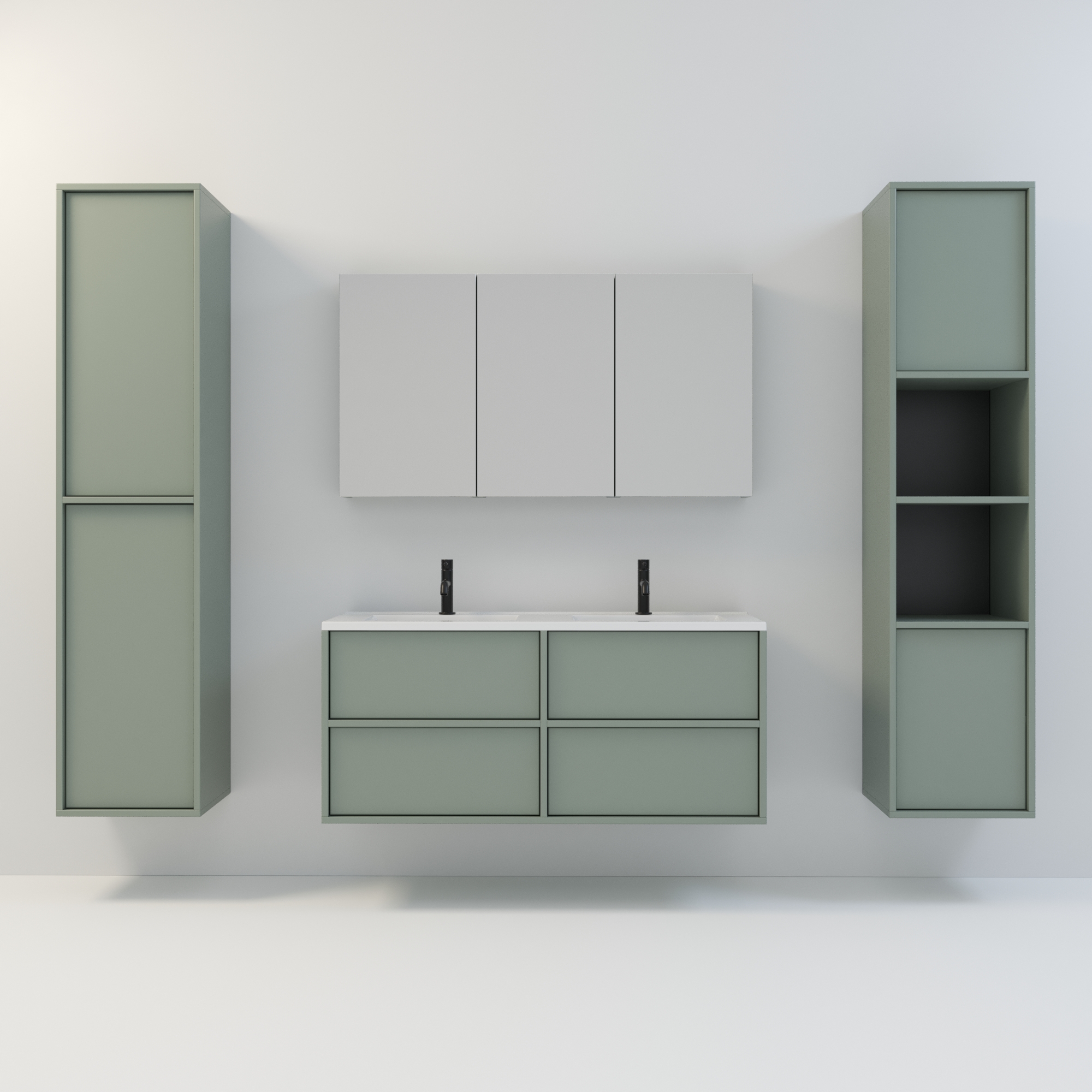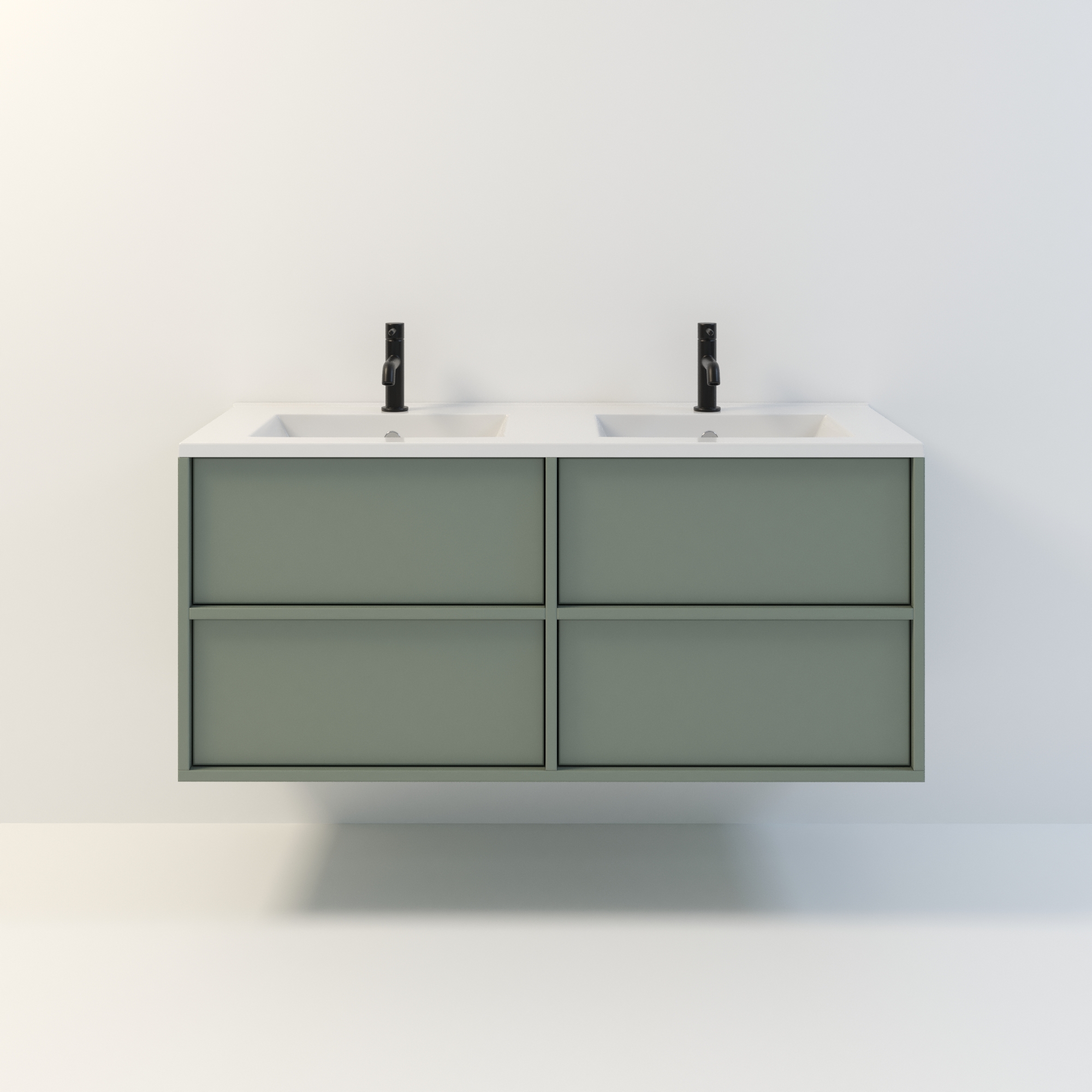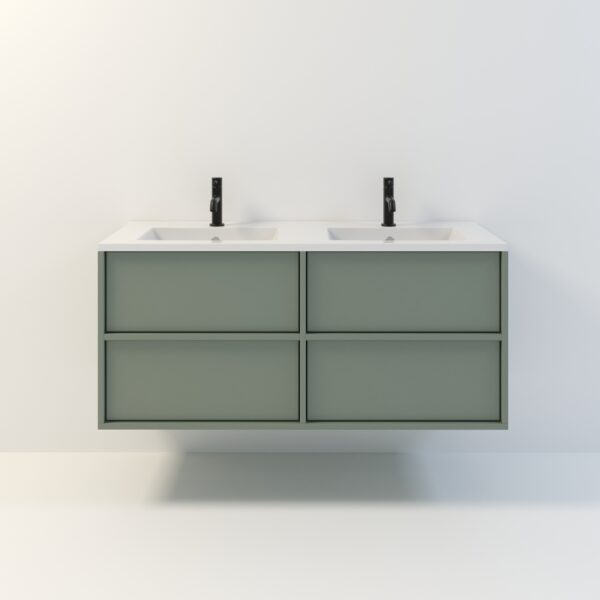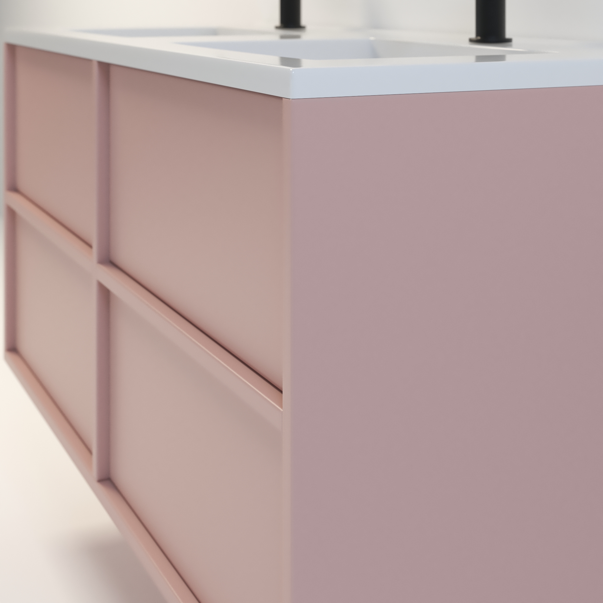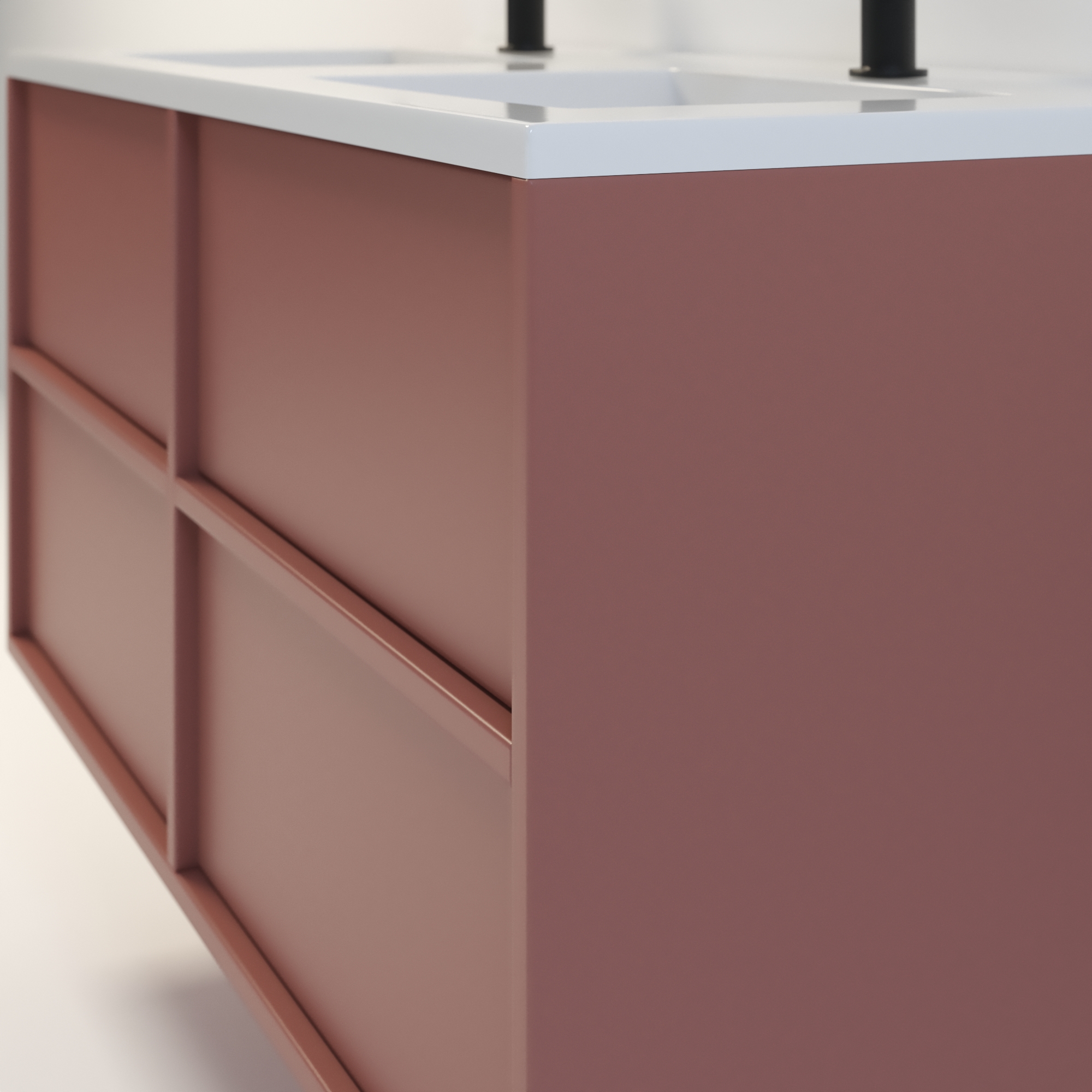Szafka łazienkowa wisząca Minimal 4 z umywalką to nowoczesny zestaw łazienkowy który, składa się z szafki łazienkowej z czterema szufladami oraz podwójnej umywalki ceramicznej pełniącej jednocześnie funkcję blatu. Komplet ten jest niezwykle funkcjonalnym i trwałym rozwiązaniem. Połączenie uniwersalnego stylu z geometryczną formą sprawia, że szafka dobrze komponuje się w różnych aranżacjach. Można ją dopasować zarówno do łazienek nowoczesnych, jak i klasycznych. Dostępność kilku kolorów oraz opcjonalnych uchwytów ułatwia dopasowanie mebla do stylu wnętrza. To połączenie prostoty z nowoczesnym stylem, które nie wychodzi z mody.